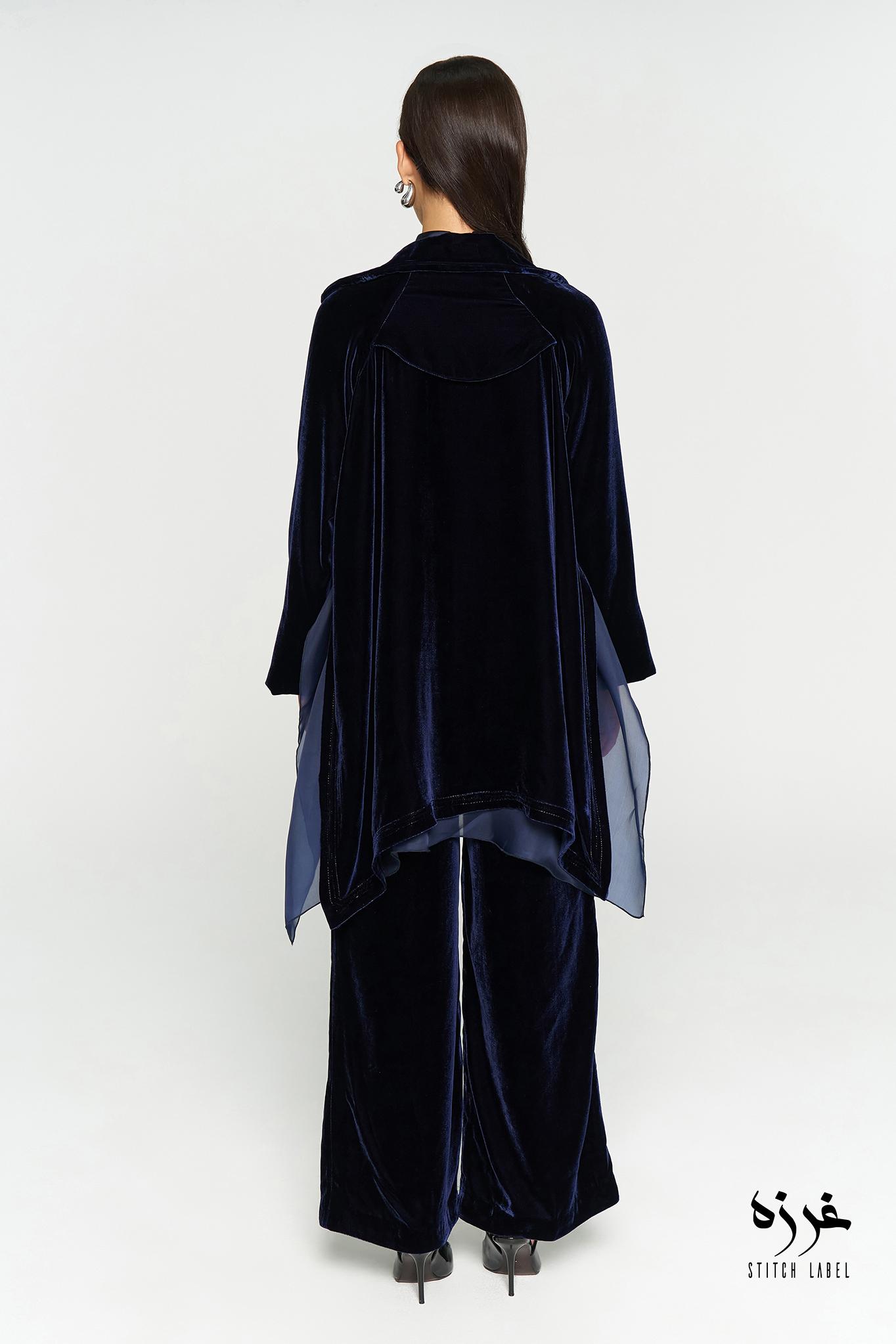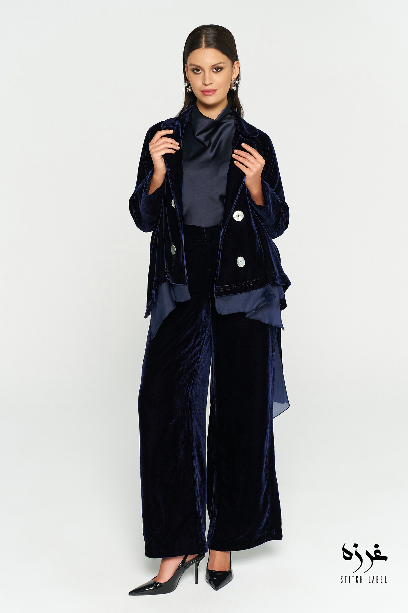 بلوزه مخمل كحلي بإزره صدف وبنطلون مخمل