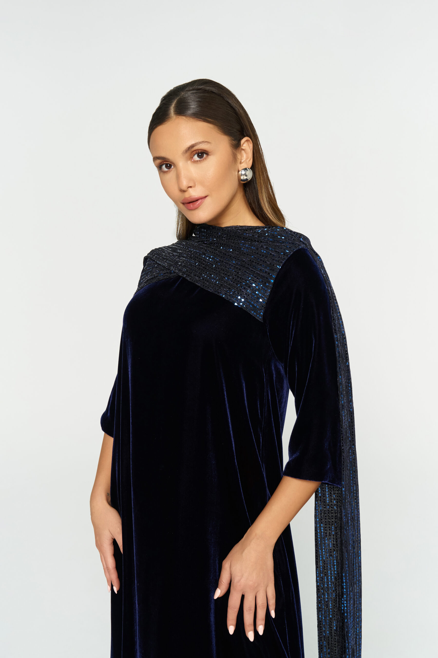 Velvet dress with scarf