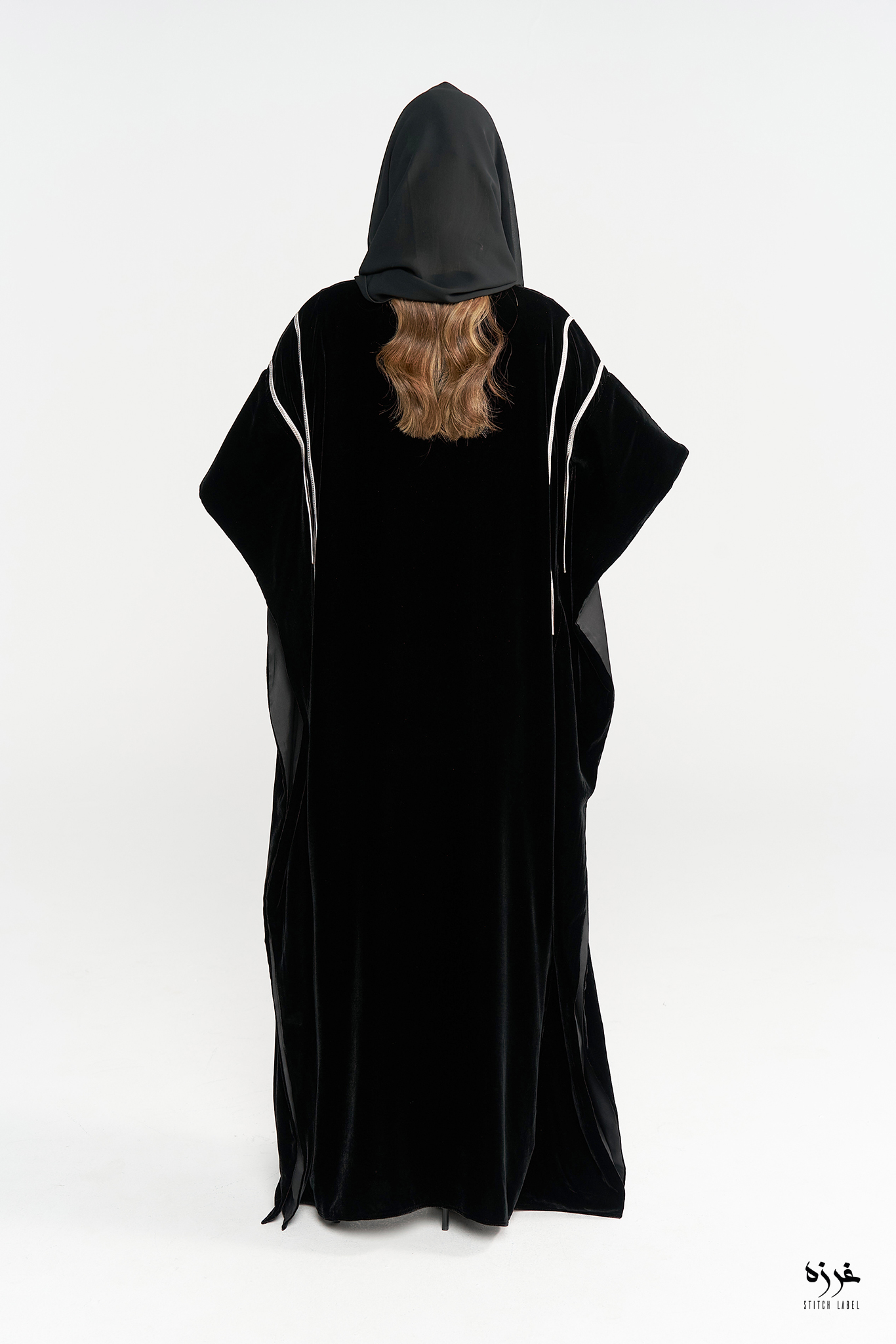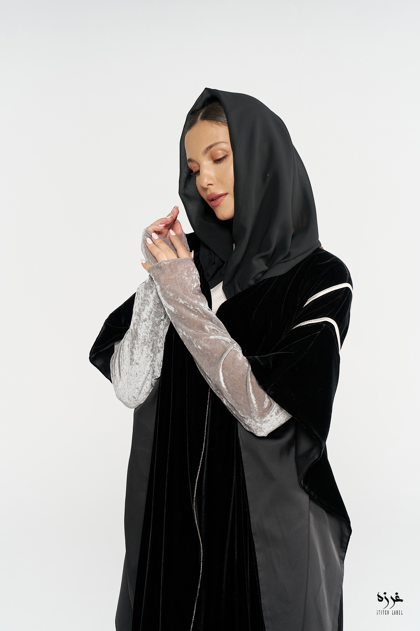 Black velvet Abaya and plain chiffon headscarf