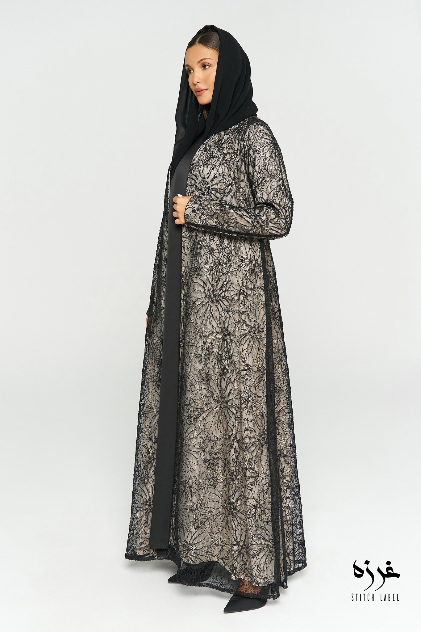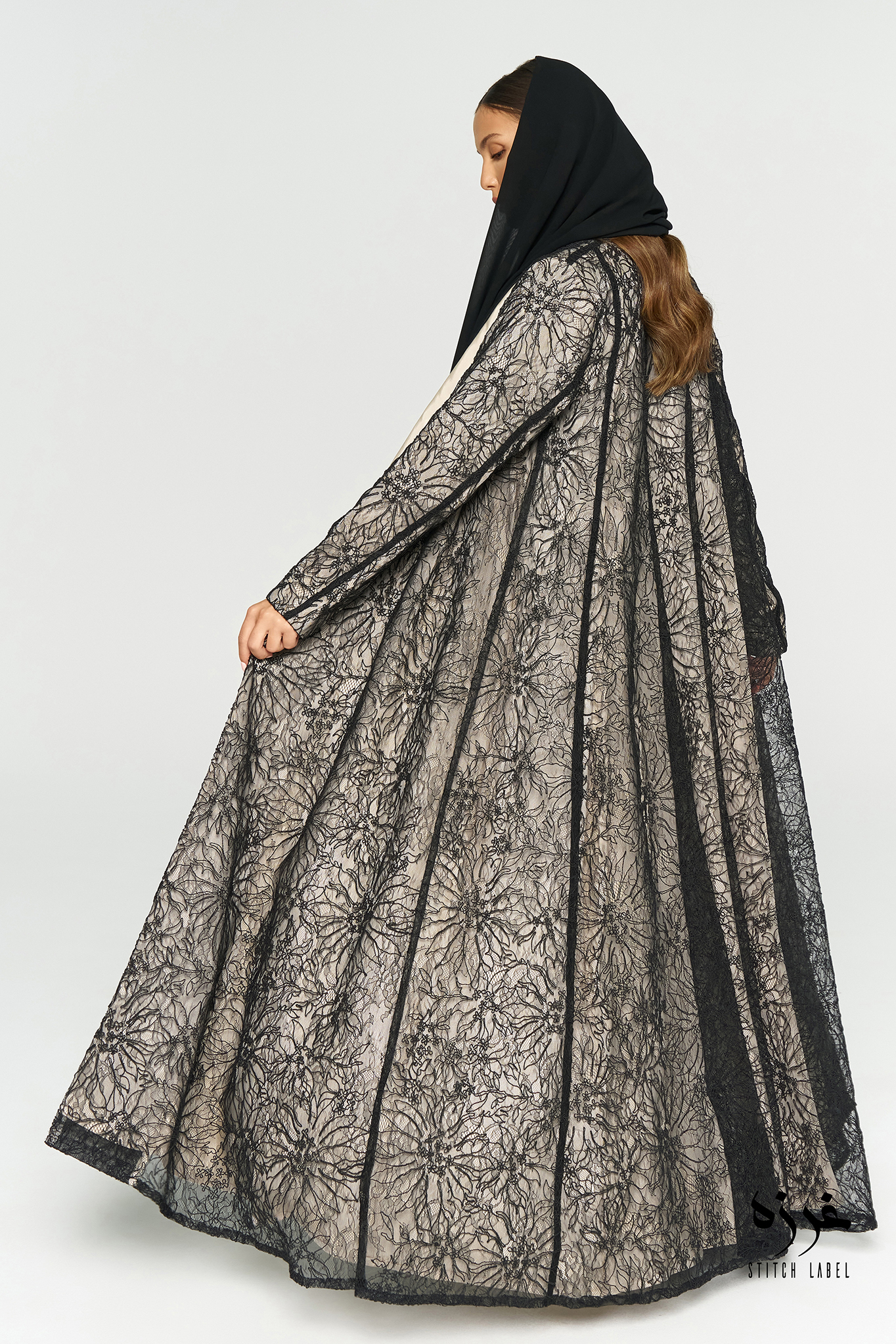 Black dantiel Abaya lining bige and plain chiffon headscarf