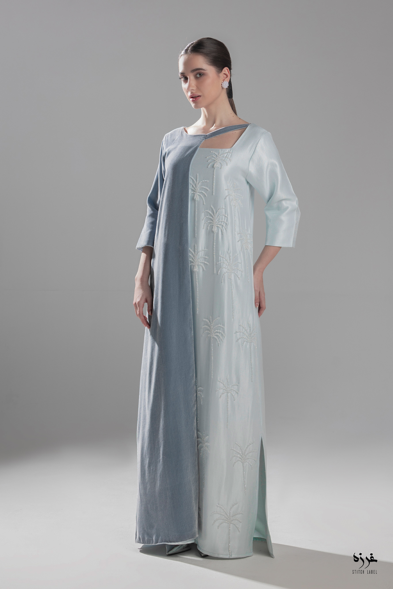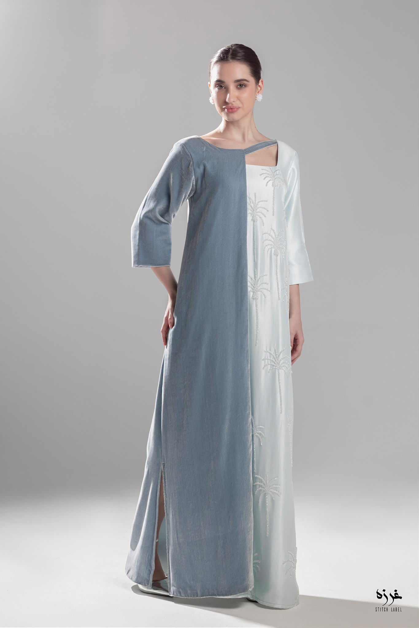 light blue velvet dress with embroidery