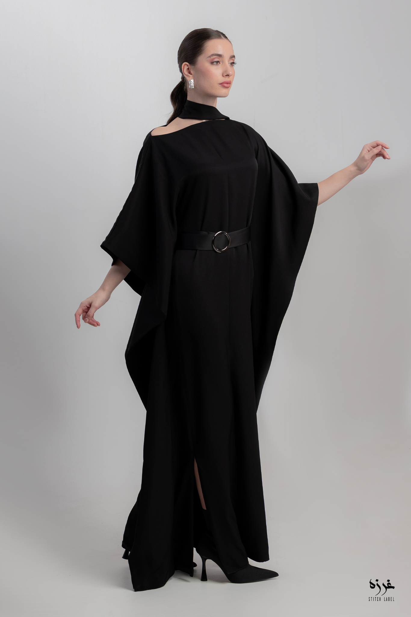 Black crepe  dress with belt